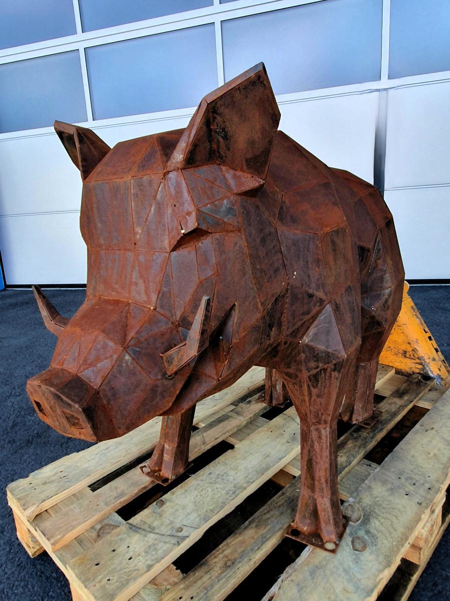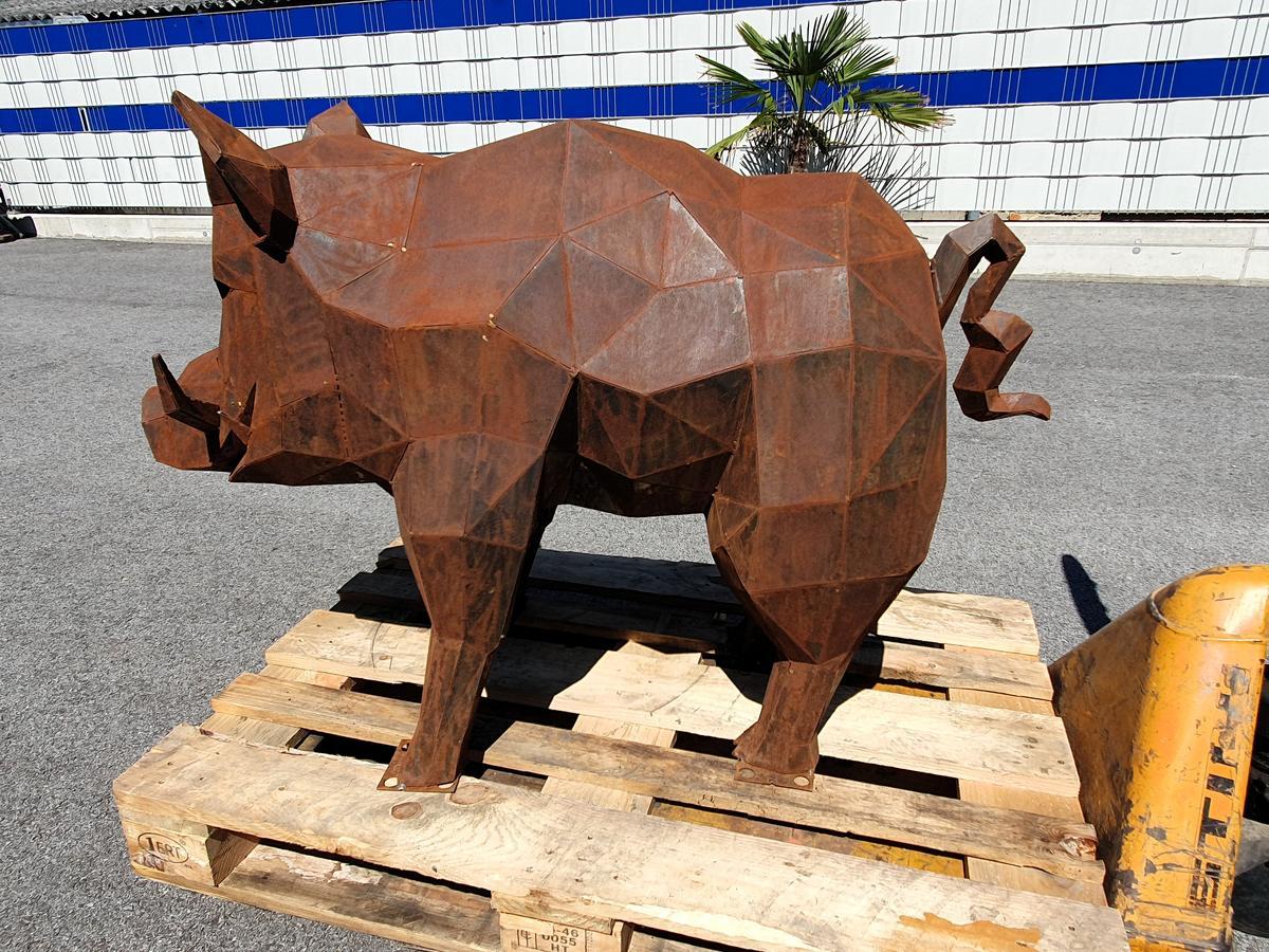 Wildschwein Skulptur aus Cortenstahl, handgefertigt, ca. 35kg, Abmessung rund L 120 / B 50 / H 80 cm, Wandstärke 1.5mm