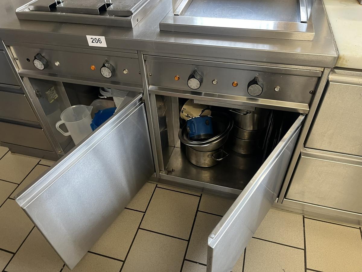 Arbeitsmodul ca. 162/70/85 cm mit Grillplatte und Doppelfriteuse, 2 Türen, 3 Auszugsladen in Edelstahlausführung
