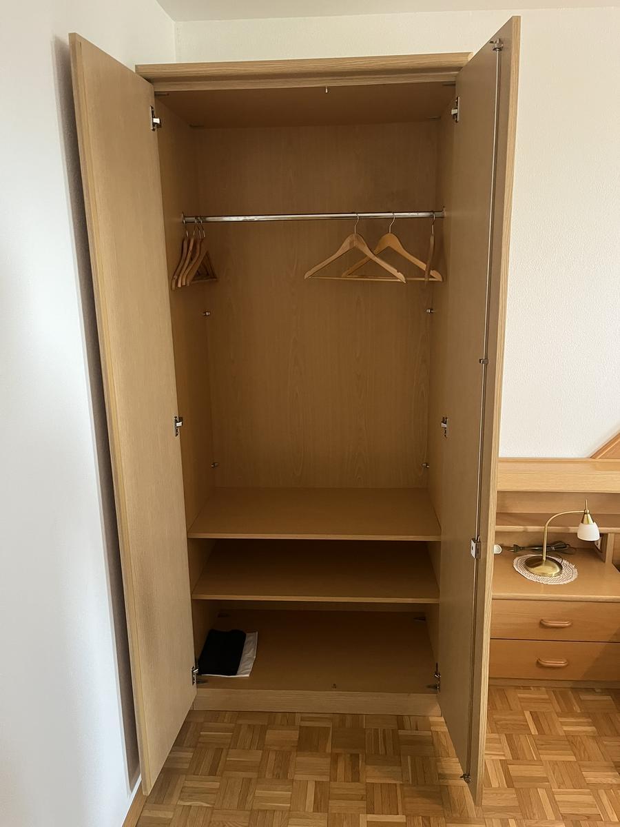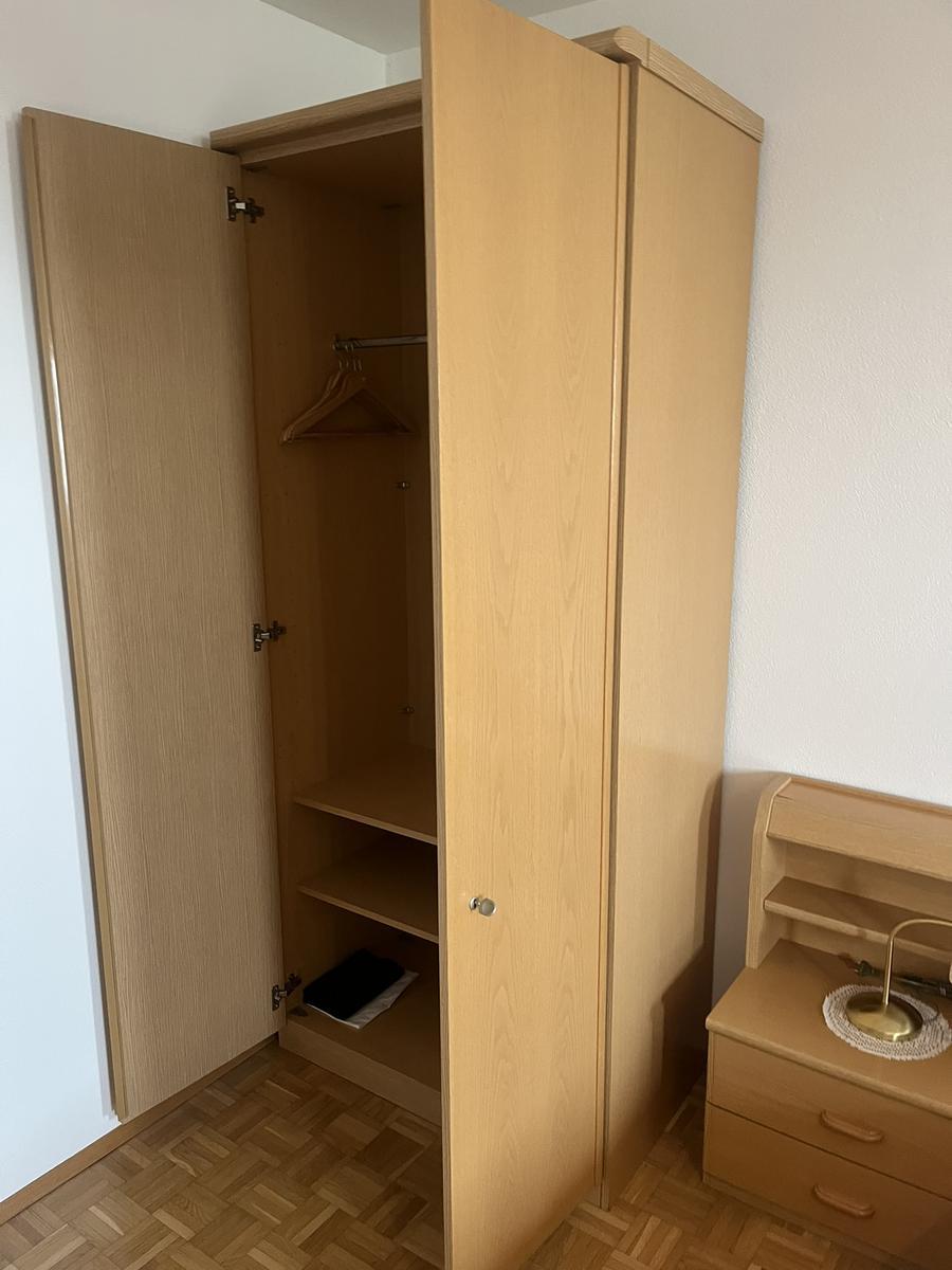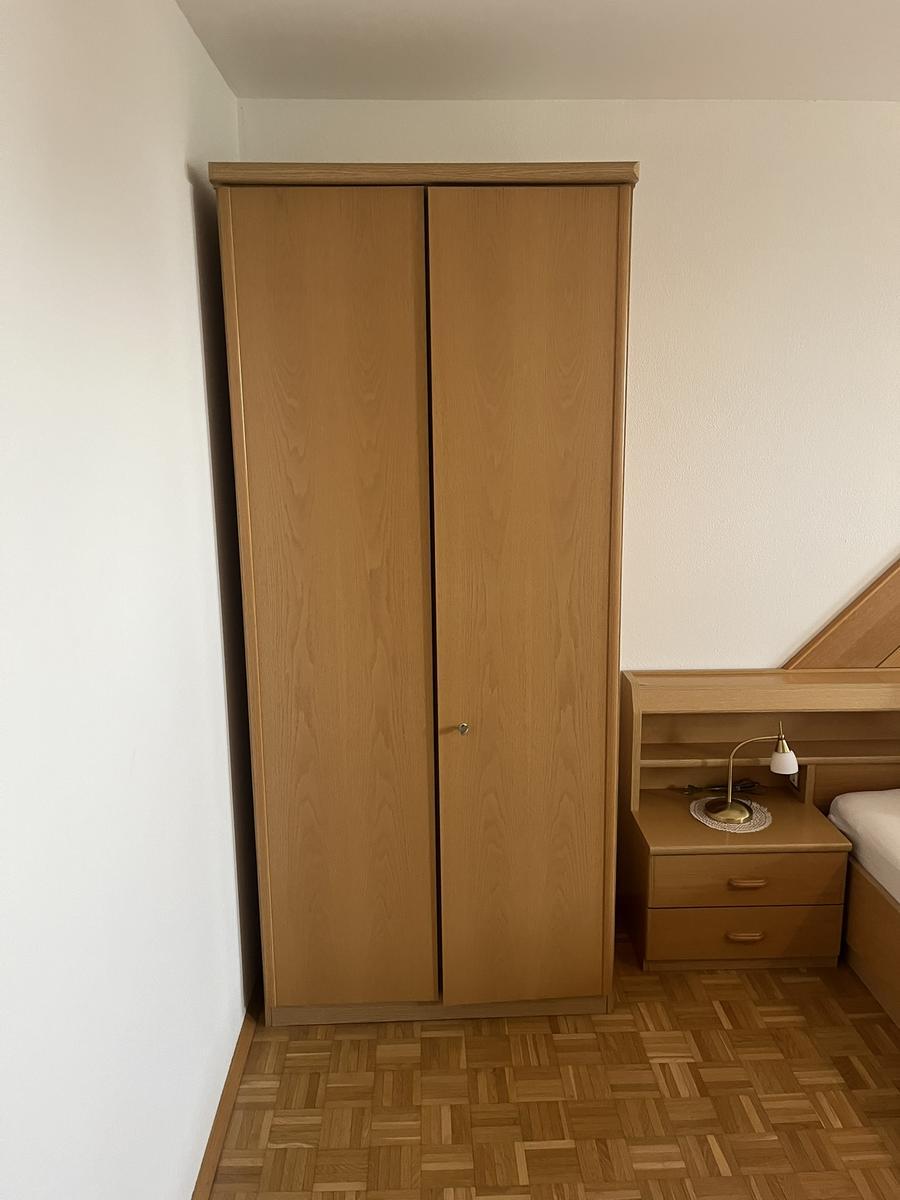 Doppelbett mit 2 Stk. Matratzen ca.200/80 cm , Doppeltür-Kleiderschrank ca. 218/93/58 cm , Tisch ca. 80x60 cm, Eckverbau ohne Kühlschrank ca. 73/64/69 cm?d=2025-12-15 08:32:51