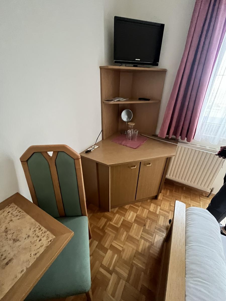 Doppelbett mit 2 Stk. Matratzen ca.200/80 cm , Doppeltür-Kleiderschrank ca. 218/93/58 cm , Tisch ca. 65x50 cm, Eckverbau ohne Kühlschrank ca. 73/64/69 cm?d=2025-12-16 03:00:17