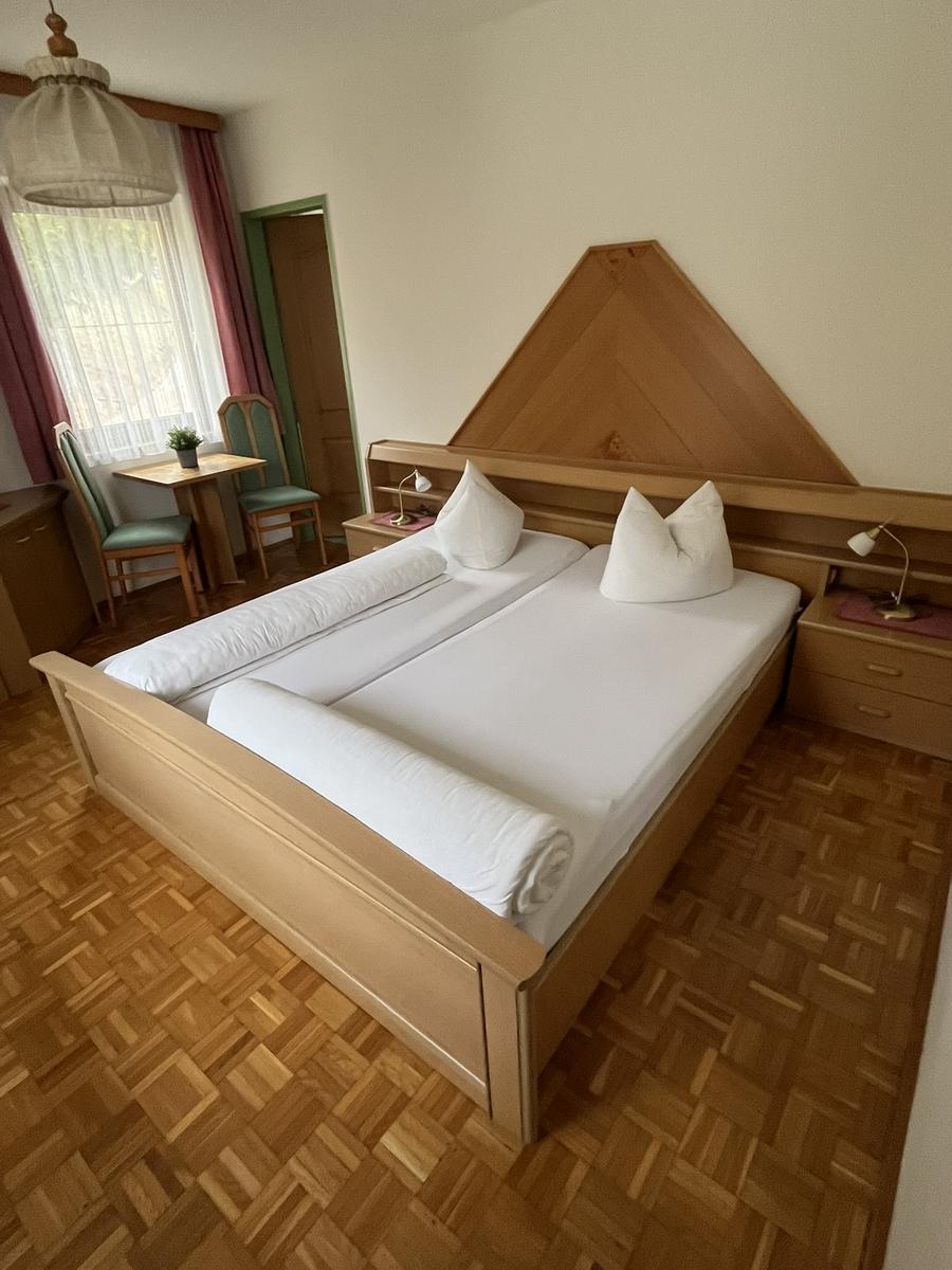 Doppelbett mit 2 Stk. Matratzen ca.200/80 cm , Doppeltür-Kleiderschrank ca. 218/93/58 cm , Tisch ca. 60x60 cm, Eckverbau ohne Kühlschrank ca. 73/64/69 cm?d=2025-12-16 03:03:47
