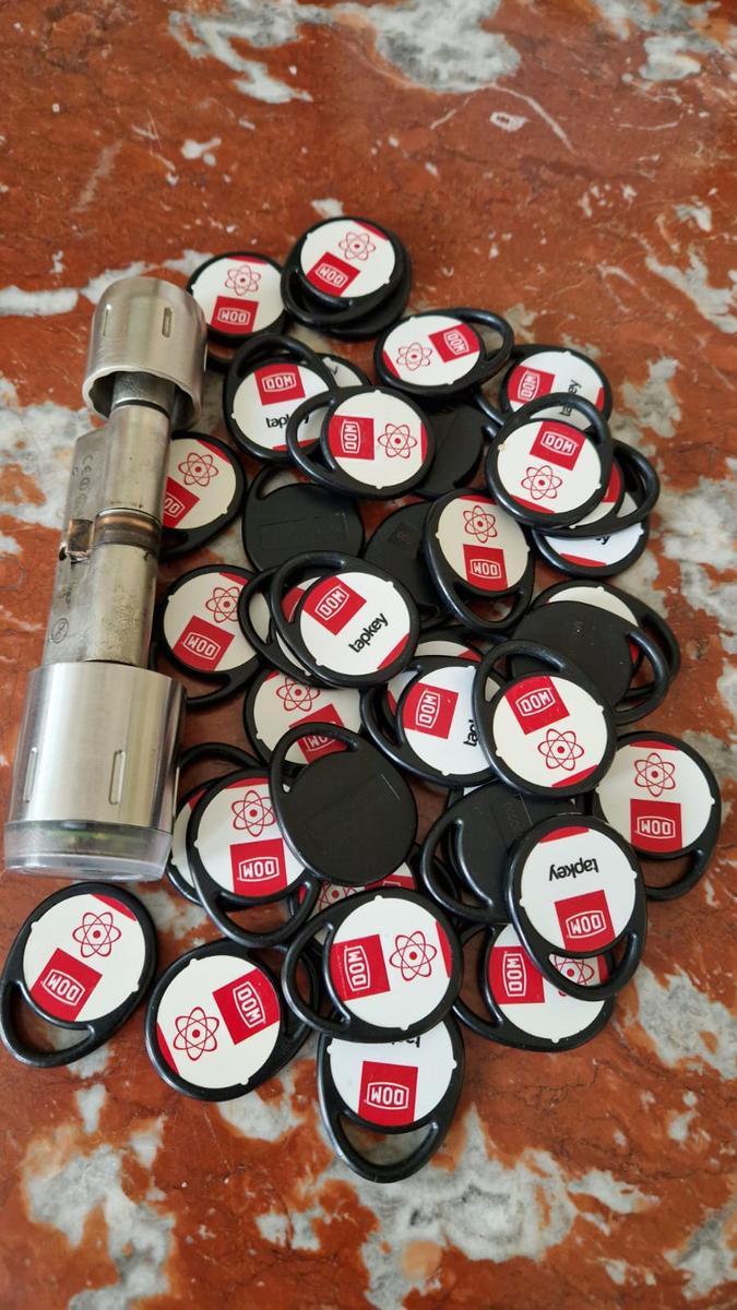 Sicherheitssystem bestehend aus 1 Zylinder mit einer Innenstärke von 8,04 cm (Türstärke), Werkzeugen, Mastercard, 10 Transpondern