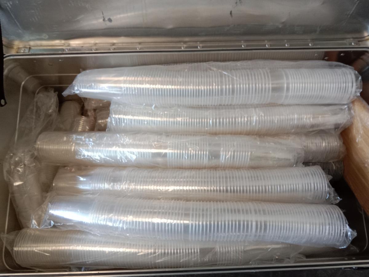 Großposten Plastikgläser inkl. Transportbox Alu 90x45x40cm