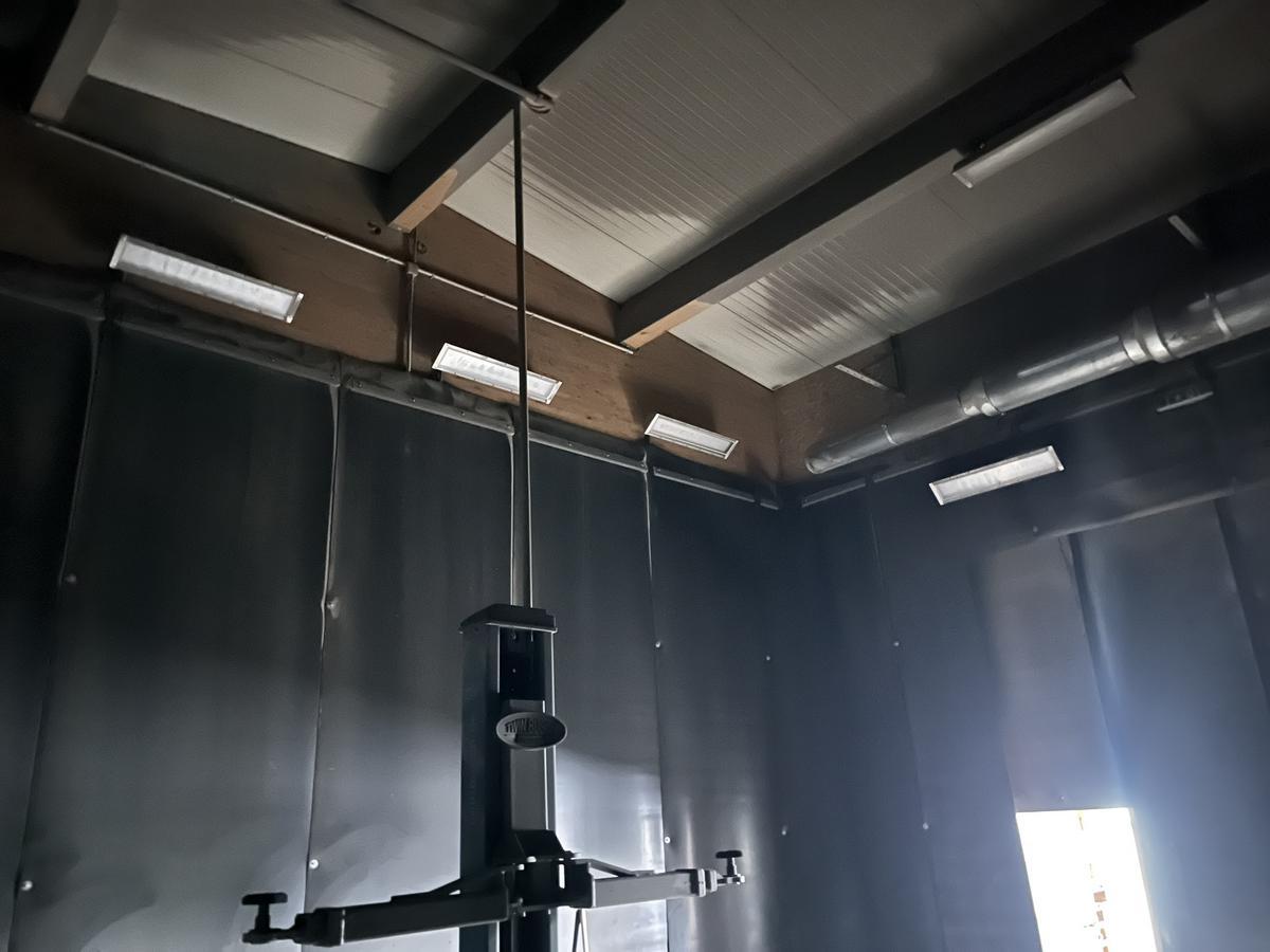 komplette Sandstrahlkabine samt Toranlage, Seitenschutzwände, Lichtanlage, Strahldruckregelung, ca. 9.50/7 m?d=2026-03-07 07:11:52