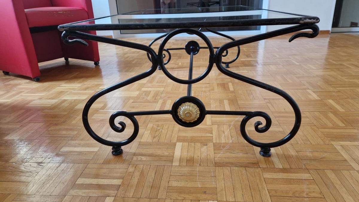 Glastisch, Gußeisen, sehr stabil, mit Goldverzierung, 1,23 cm lang x 73 cm breit x 45 cm hoch?d=2026-04-14 07:54:46