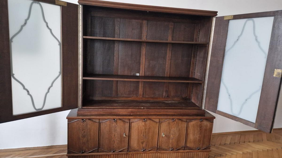 Altdeutscher Kasten, bestehend aus Ober- und Unterteil, Unterkasten 172 cm lang, 44 cm tief, 61 cm hoch und Oberkasten 153 cm lang, 35 cm tief, 122 cm hoch, Gesamthöhe 183 cm?d=2026-04-14 07:49:24