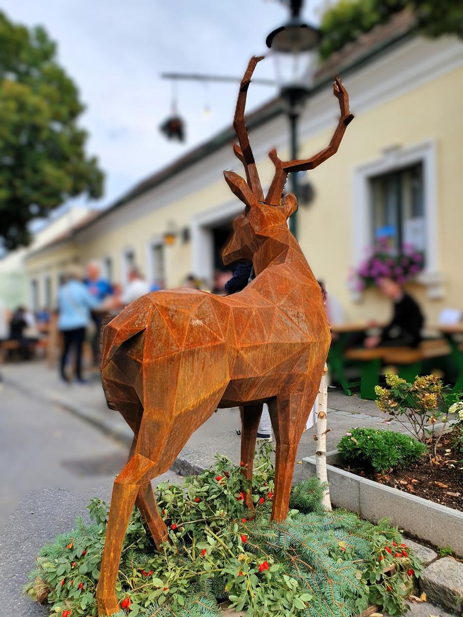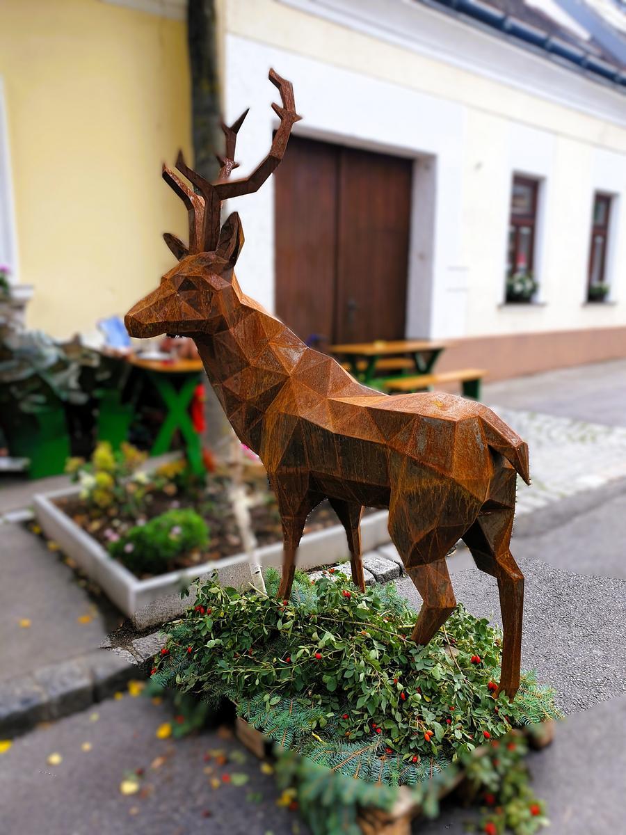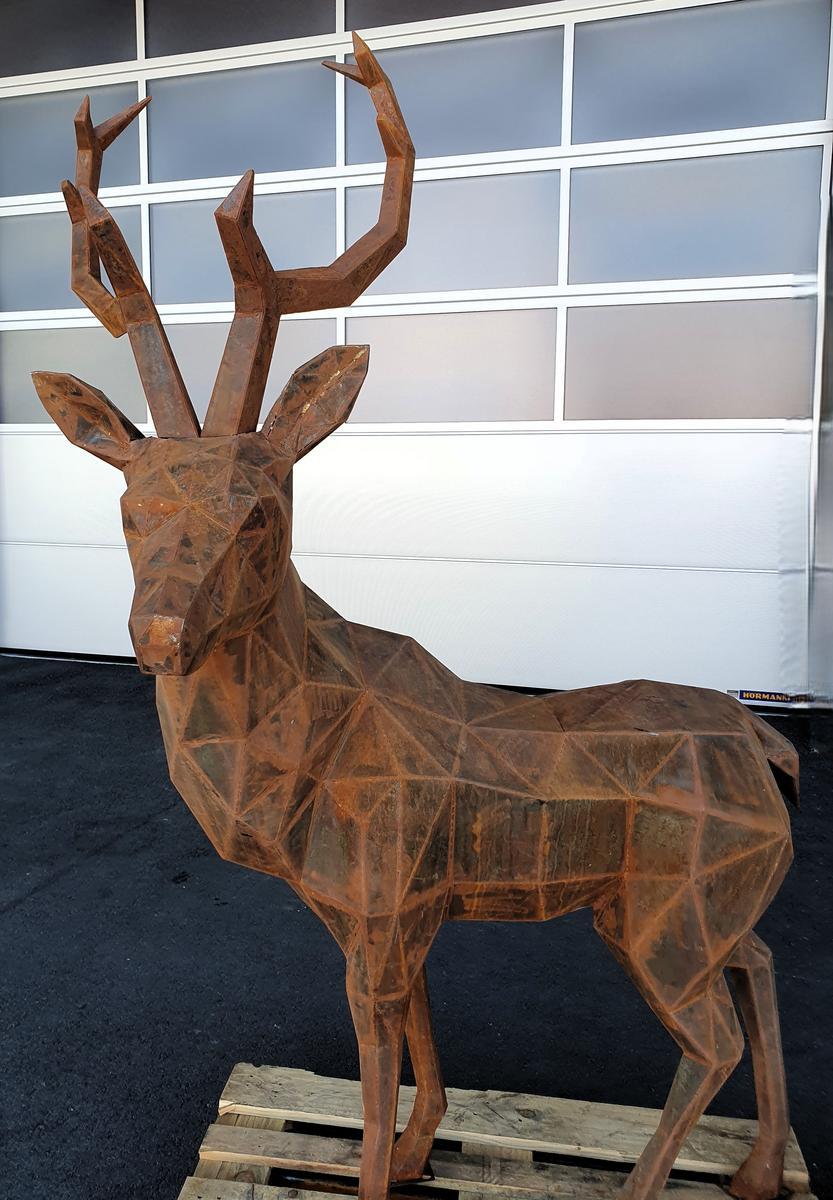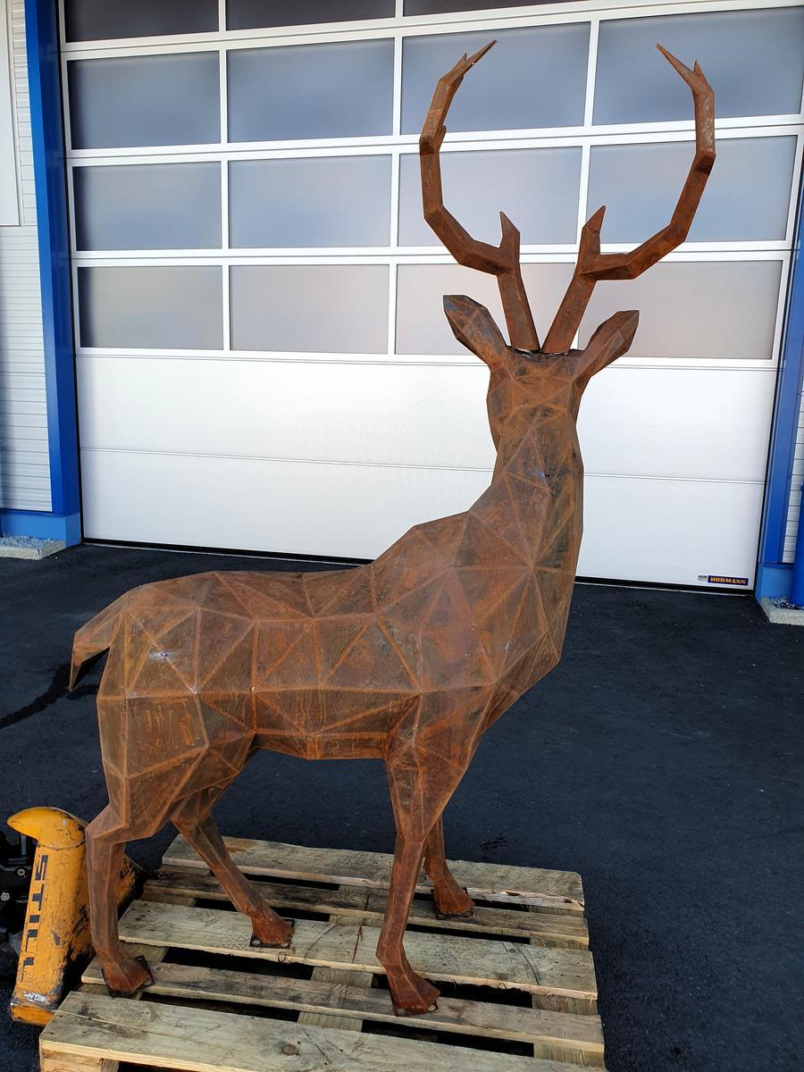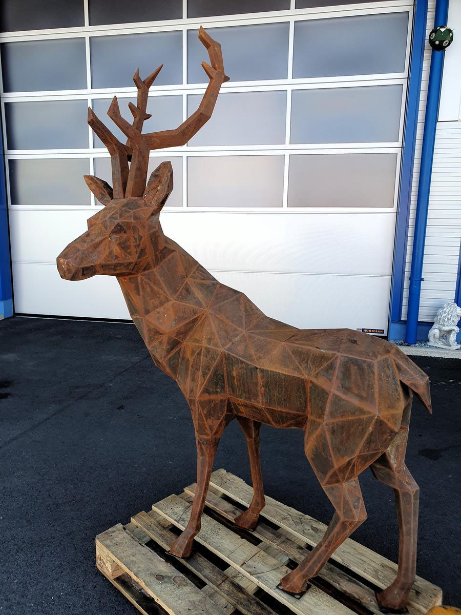 Hirsch Skulptur aus Cortenstahl, handgefertigt, ca. 45kg, Abmessung rund L 130 / B 100 / H 200 cm, Wandstärke 1.5mm?d=2025-12-06 06:31:08