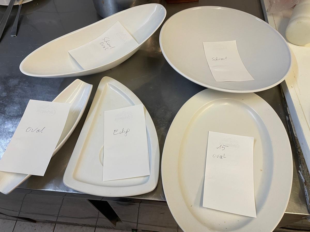 15 Stk. ovale Teller, 11 Stk. eckige Teller, 9 Stk. Porzellan Schüsseln DM 30cm, 10 Stk. tiefe Porzellanschüsseln oval DM 36cm, 9 Stk. ovale Porzellanschüsseln DM 26cm?d=2025-12-06 08:02:07