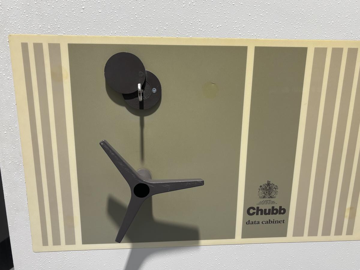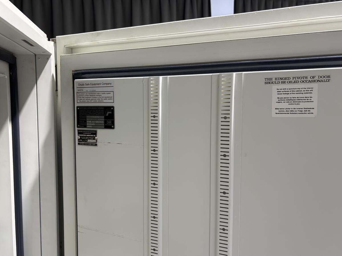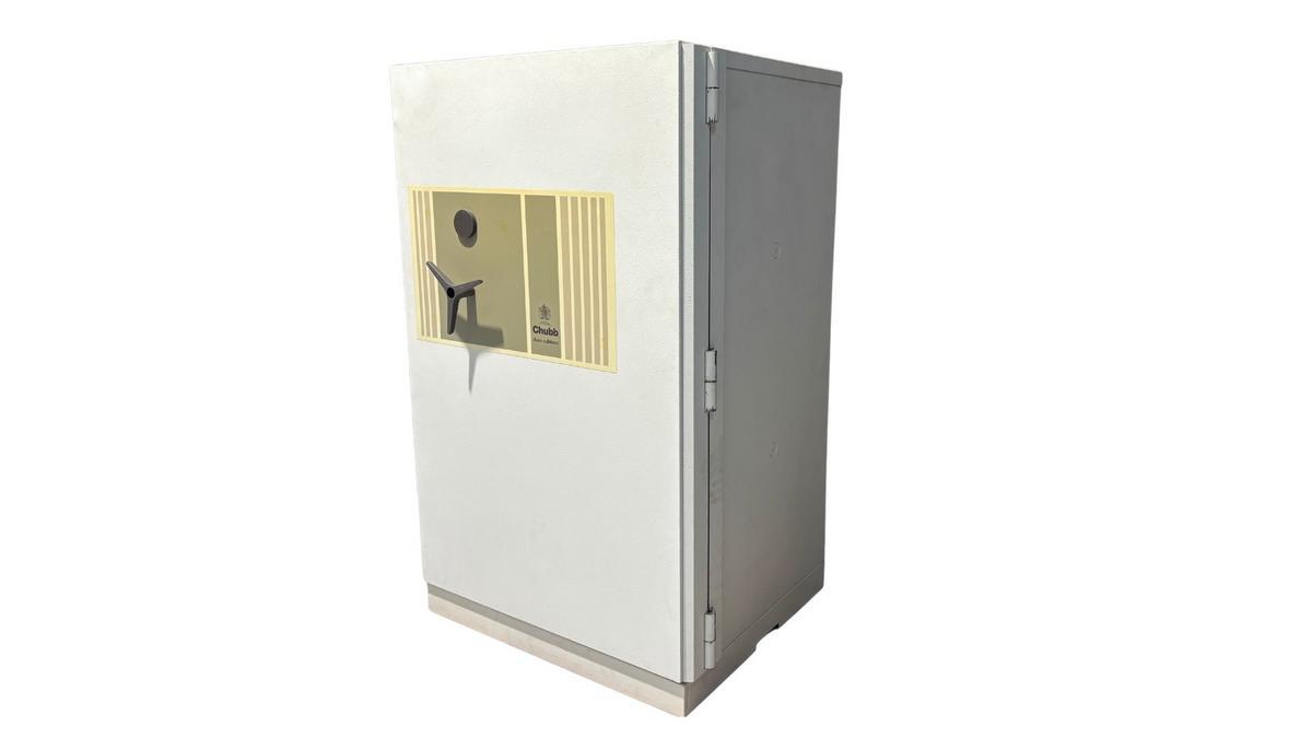 Tresor Chubb & Son’s Lock and Safe Co., Breite: 83cm, Tiefe: 73cm, Höhe: 141cm, Farbe Platte / Korpus / Türen: Weiß, Sockel: Weiß?d=2025-12-06 06:36:45