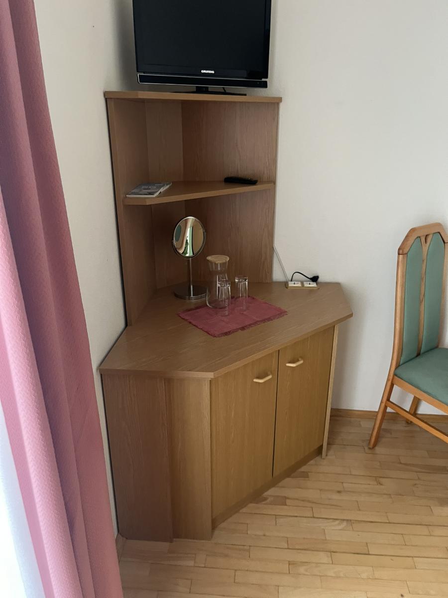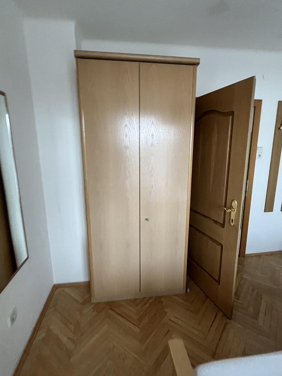 Doppelbett mit 2 Stk. Matratzen ca.200/80 cm , Doppeltür-Kleiderschrank ca. 218/93/58 cm , Tisch ca. 60x60 cm, Eckverbau ohne Kühlschrank ca. 73/64/69 cm?d=2025-12-16 02:45:11