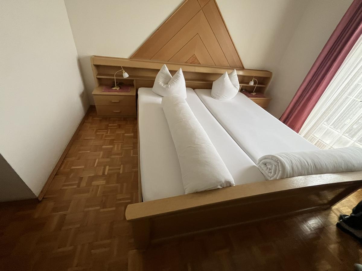 Doppelbett mit 2 Stk. Matratzen ca.200/80 cm , Doppeltür-Kleiderschrank ca. 218/93/58 cm , Tisch ca. 80x60 cm, Eckverbau ohne Kühlschrank ca. 73/64/69 cm?d=2025-12-16 11:41:36