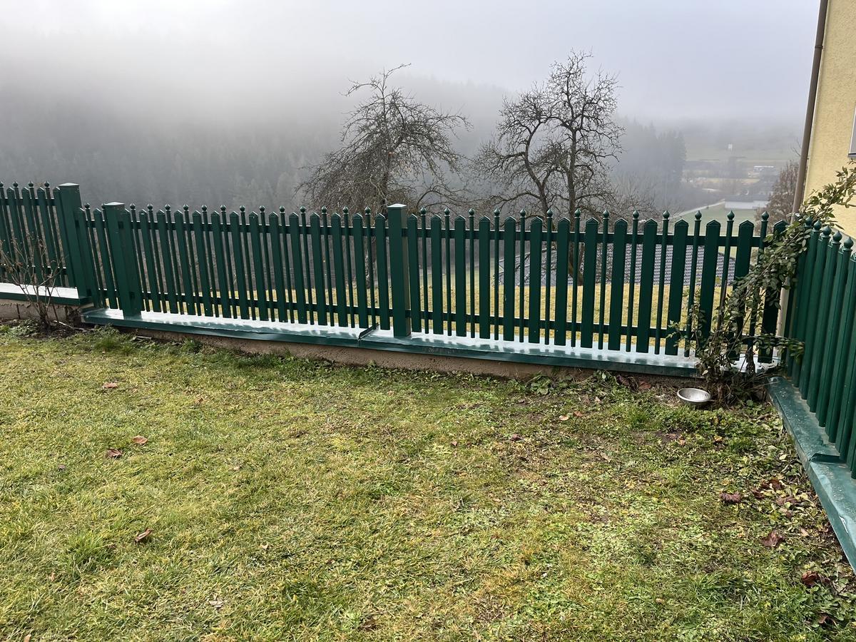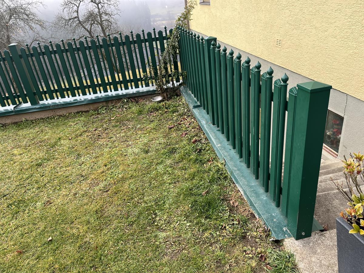Aluzaun grün ca. 30 Laufmeter - leicht demontierbar - Profile abschraubbar von Bodenhülse - siehe Fotos