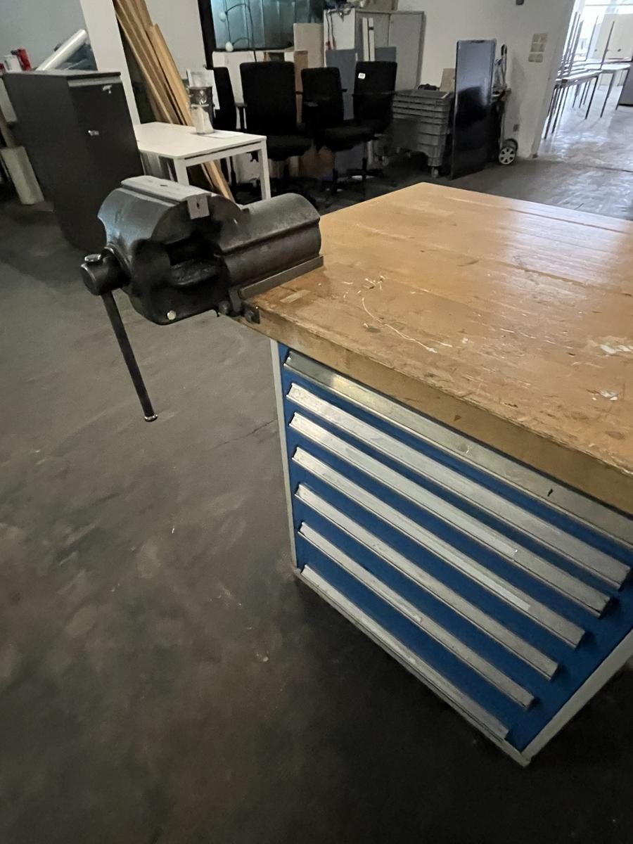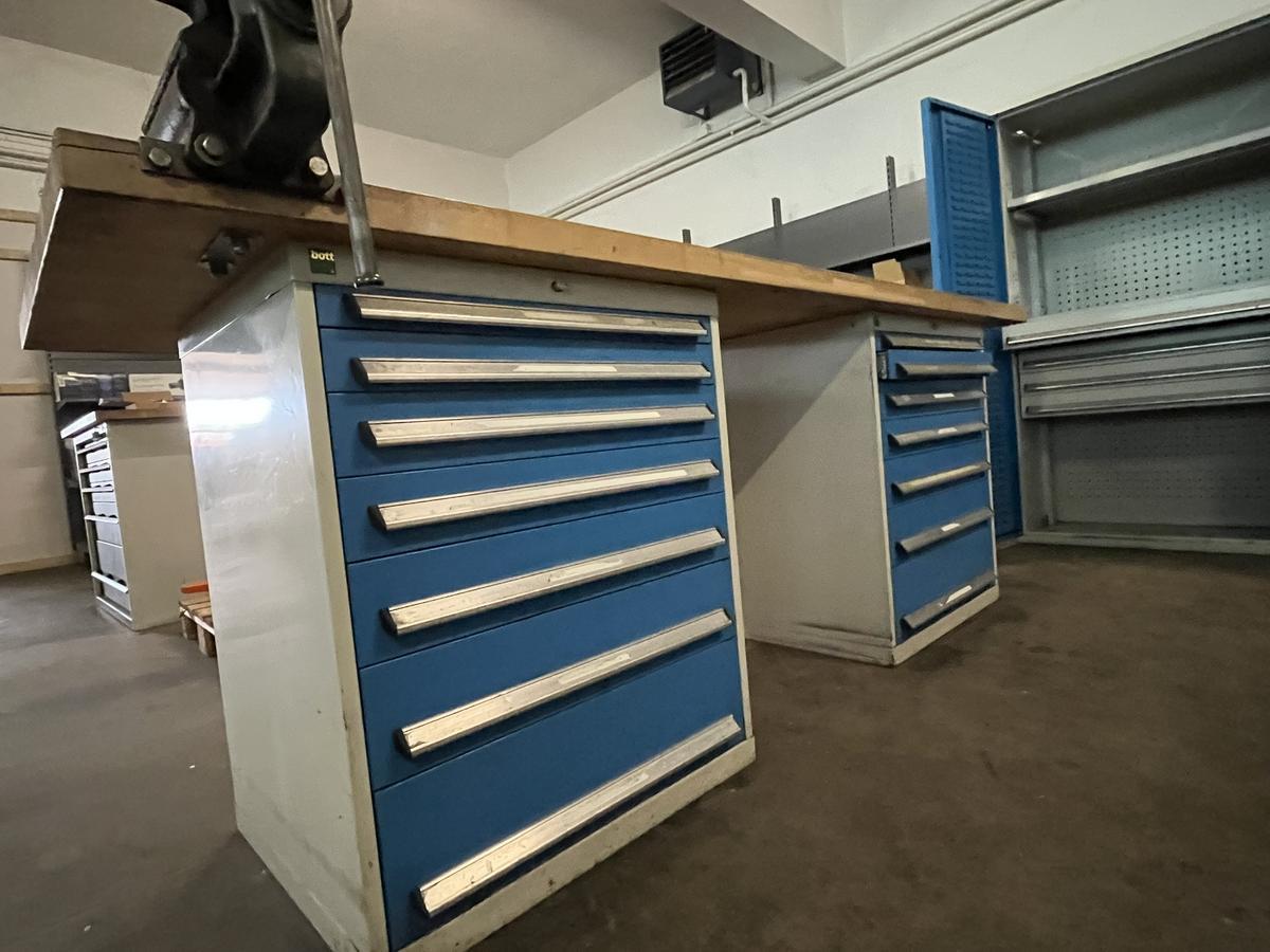 BOTT Werkbank  250/90 cm und Schraubstock - 2 Schubladenblöcken bis 75 kg Fachbodenlast?d=2026-04-14 13:01:55