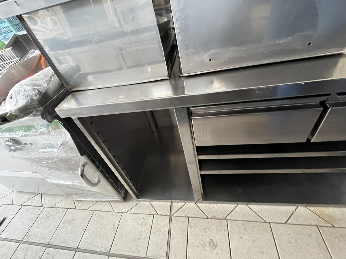 Edelstahl Küchenmodul mit Doppelfritteuse, 2 x 15L, 2 Laden, 293x70x75cm
