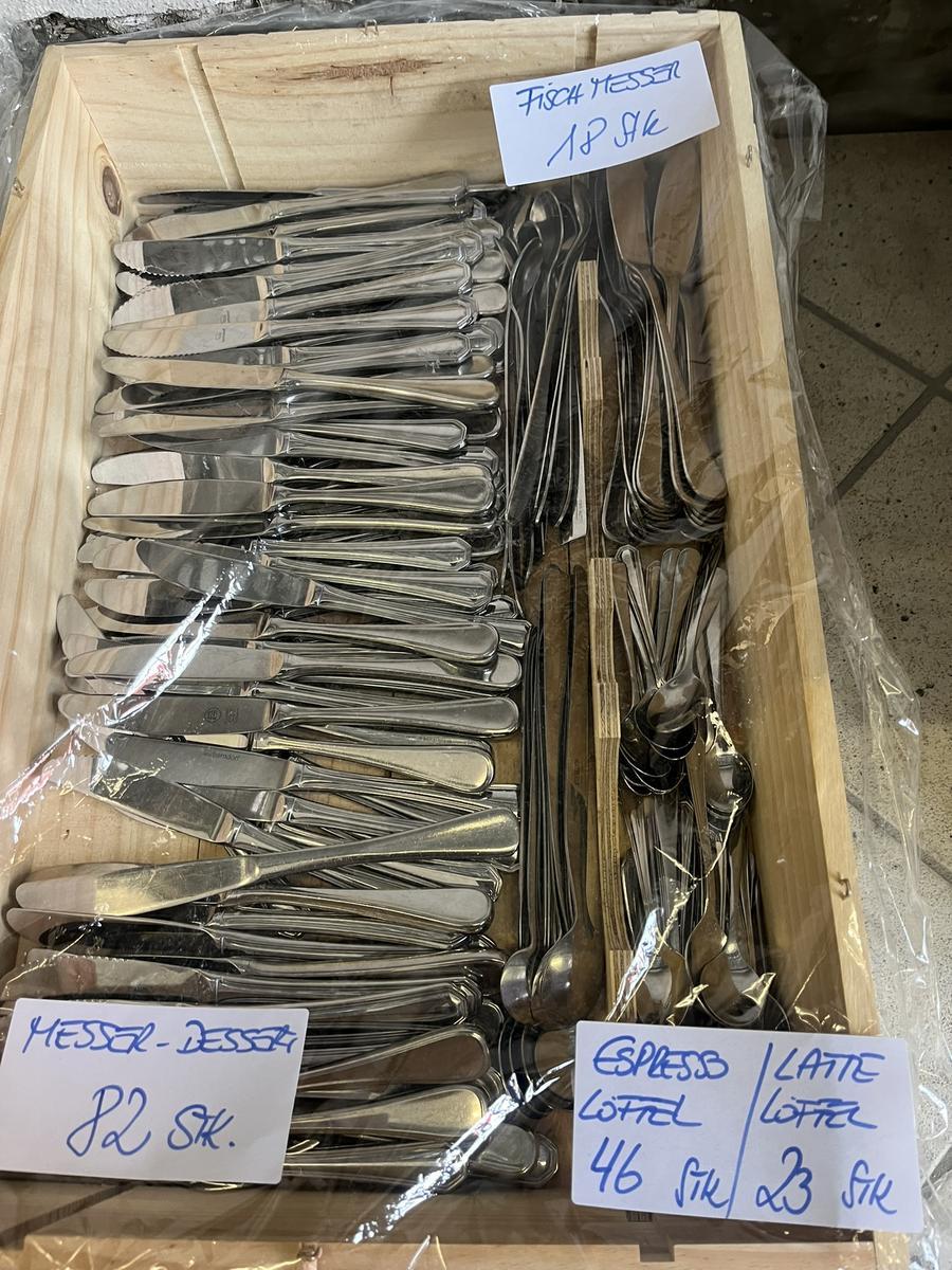 Besteckset bestehend aus 85 Dessertmesser, 18 Fischmessern, 46 Stk. Espressolöffeln und 23 Stk. Latte Macchiato Löffel
